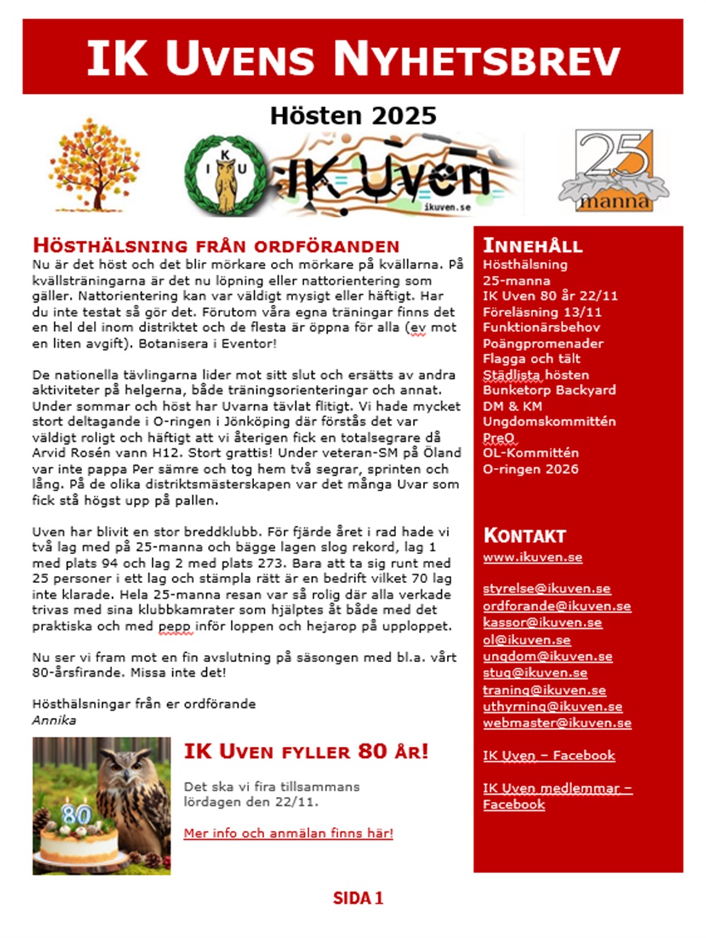 Nu är höstens nyhetsbrev här! Lagom till att kvällarna börjar bli mörkare och kulnare så kan man nu krypa upp i soffhörnet och läsa om allt som händer och pågår i klubben.
